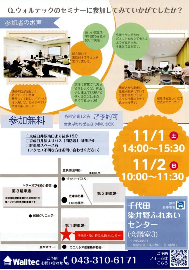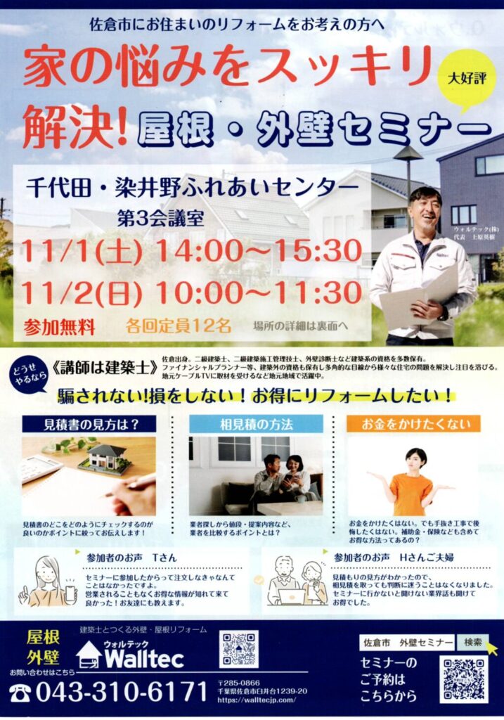ウォルテックでは、外壁・屋根に関するセミナーを毎月無料で開催しております。