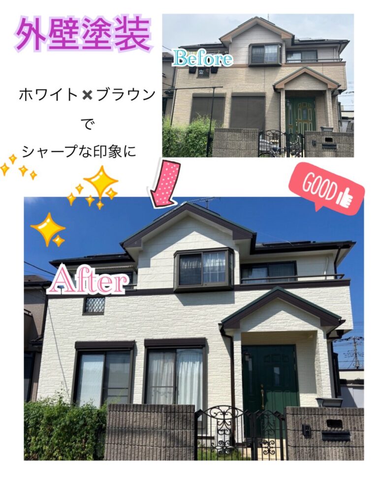 【佐倉市】外壁塗装工事|白×茶のコントラストでスッキリ上品な印象に
