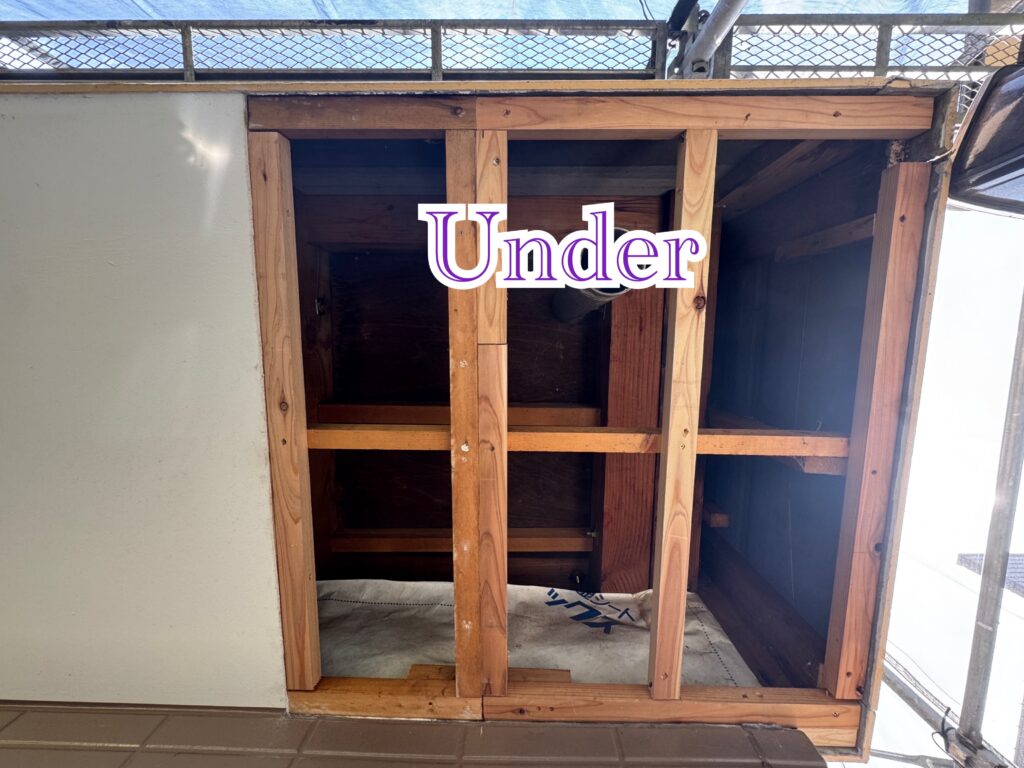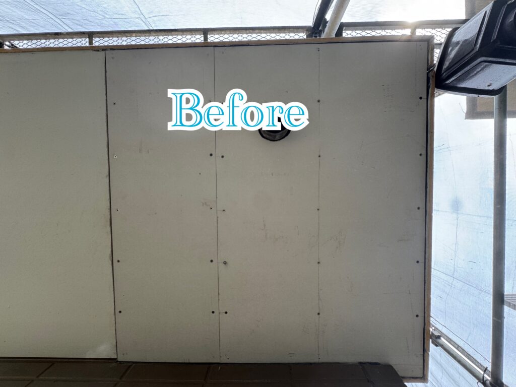 今回の外壁塗装の現場でも軒天の張り替えを行いました。まず既存の下地を確認したところ、一部が腐食していたため、その部分を取り除き新しい下地材に交換することに。