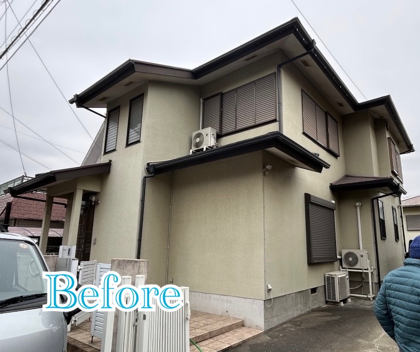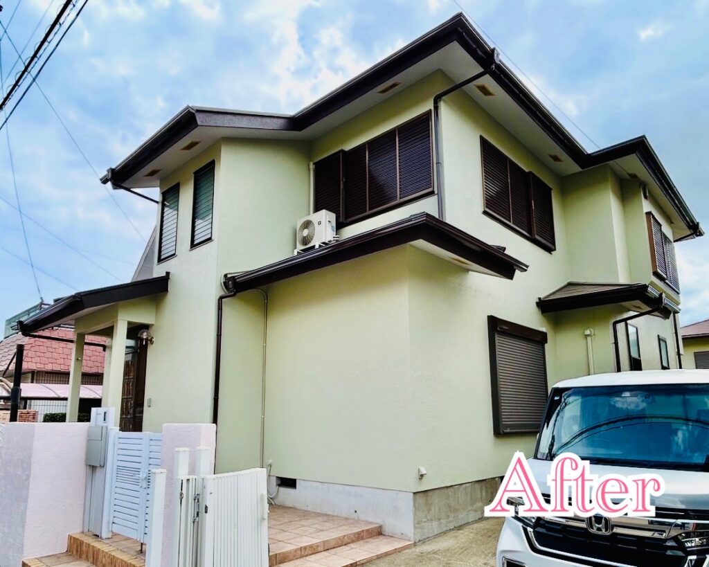 淡いグリーン系の外壁カラーを採用し、既存のサッシとのバランスも含めて全体の統一感を重視しました。