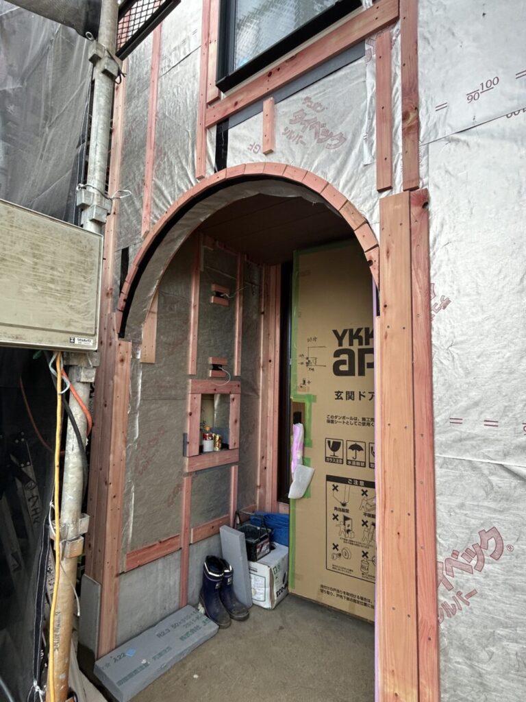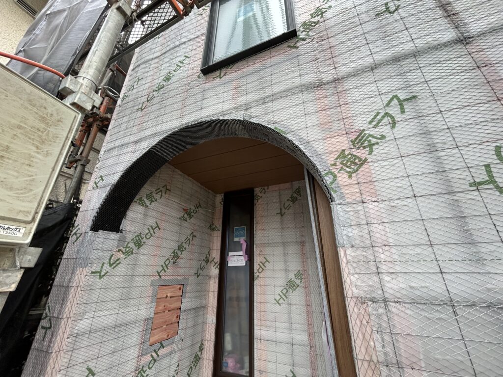 【佐倉市】モルタル外壁だからできる曲線デザイン|新築現場で行う下地チェックの重要性