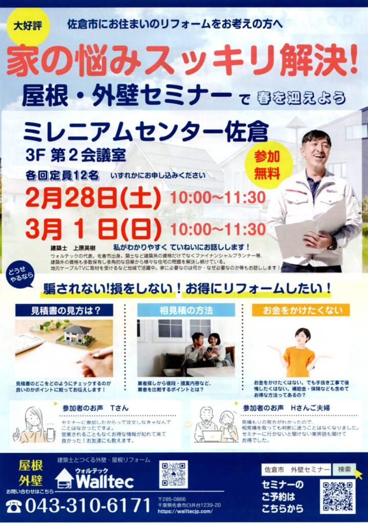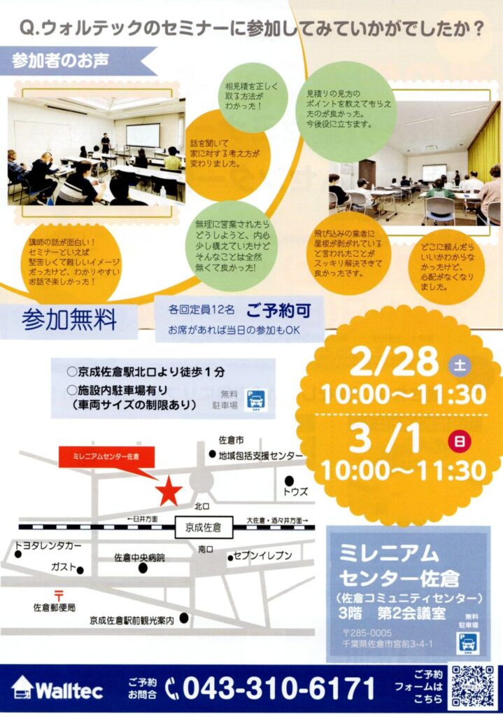 ウォルテックでは、外壁・屋根に関するセミナーを毎月無料で開催しております。