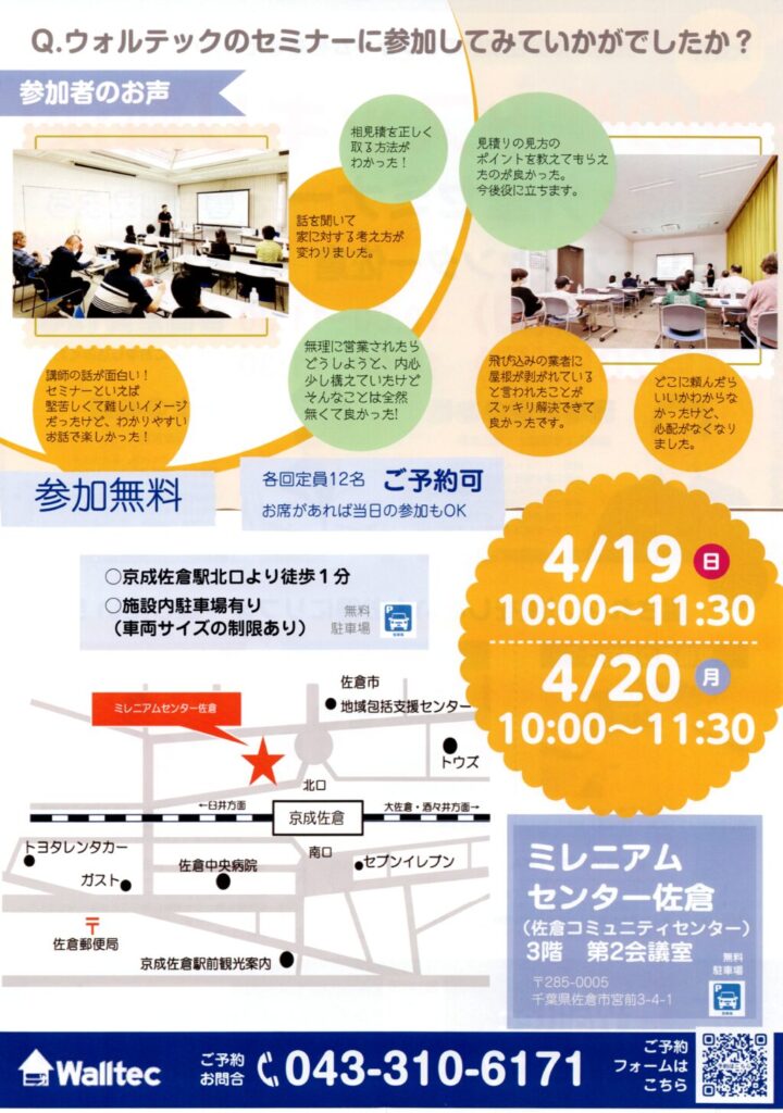 ウォルテックでは、外壁・屋根に関するセミナーを毎月無料で開催しております。